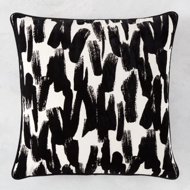 Perfect for updating your space with a bold pop of pattern, this pillow is adorned with an artful abstract design on both sides and finished with black cord trim. Feather insert included.