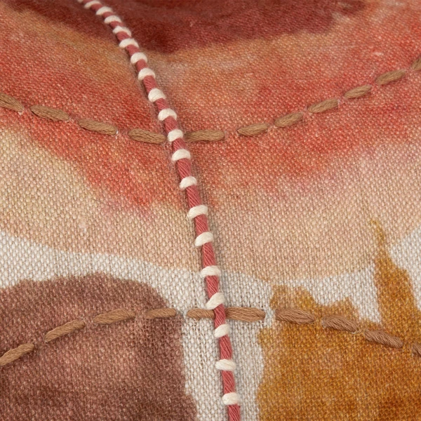 The Azaiah pillow embraces the fluid shapes and vibrant hues of watercolor painting, with delicate embroidery at its center that adds a touch of texture and depth. Its reddish-orange hues radiate with a delightful glow, adding warmth and vibrancy to any living space. The soft feather blend insert also provides a luxurious supportive feel.