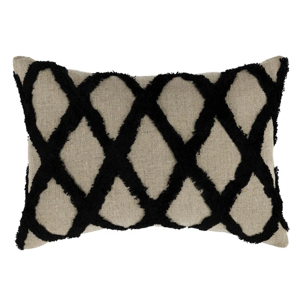 An elegant accent for any sofa, bed, or chair, this pillow is crafted of Belgian flax linen, which has been embroidered, tufted, and sheared by hand to create a dimensional trellis design. Solid cotton-linen-blend back. Feather-and-down insert included.