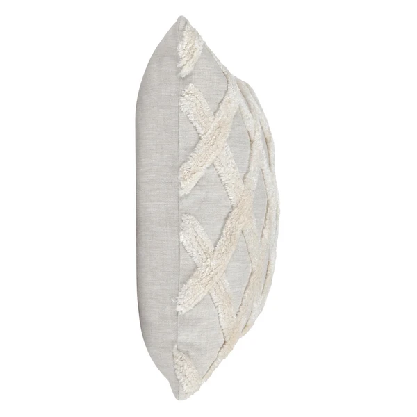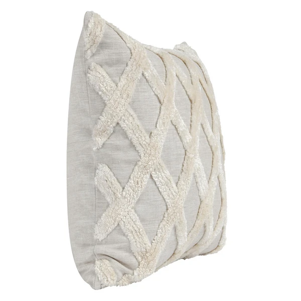 An elegant accent for any sofa, bed, or chair, this pillow is crafted of Belgian flax linen, which has been embroidered, tufted, and sheared by hand to create a dimensional trellis design. Solid cotton-linen-blend back. Feather-and-down insert included.