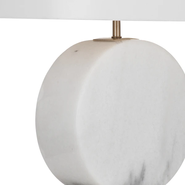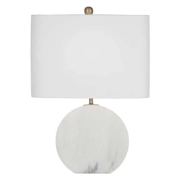 The Callum table lamp features a white marble base with a white rectangular shade.