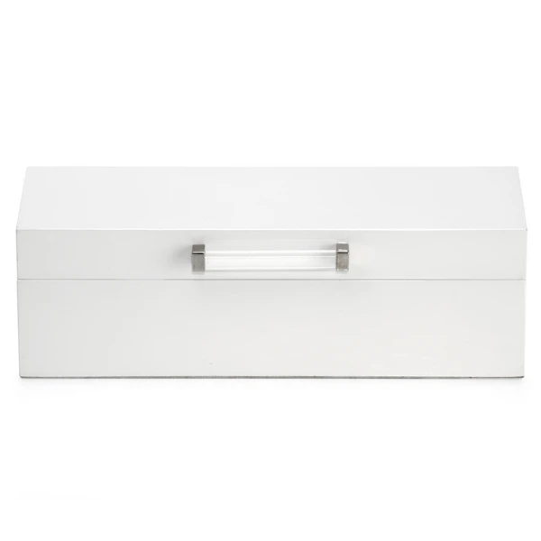 A jewelry box for serious collectors, our Cendrine collection opens with a chic Acrylic handle to an inside full of drawers for bobbles of all shapes and sizes. The Cendrine Long Jewelry Box features two open compartments, a dedicated ring display holder, and a top tray.
