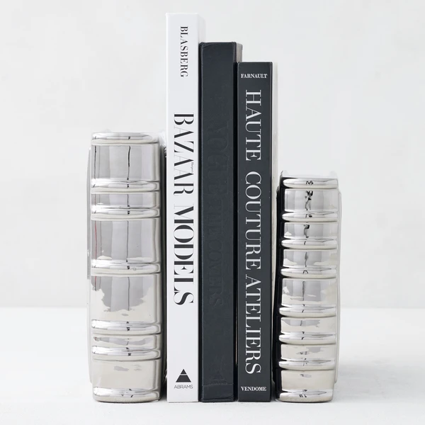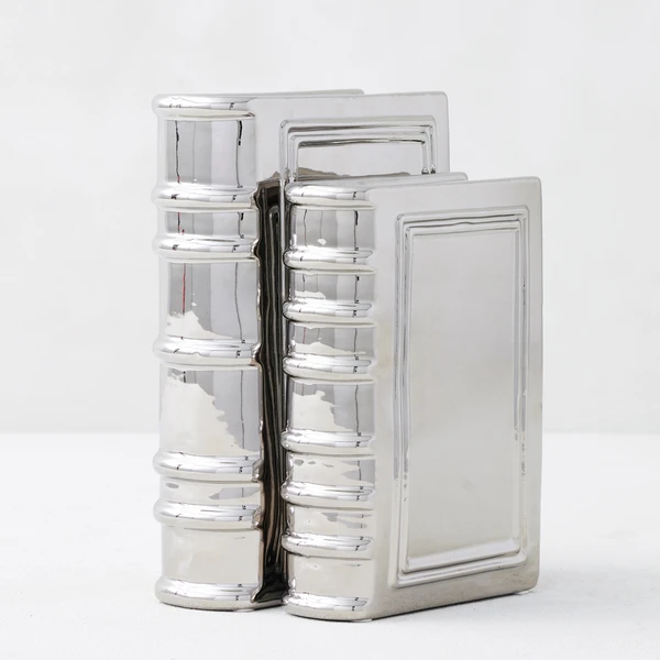 Serving as clean and simple bookends or as a sharp accent piece for a console table, these silver Ceramic Books are a smart addition to your home dĂŠcor.
