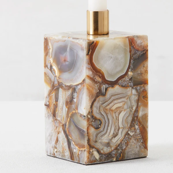 The Set of 2 Diego Taper Holders will knock your socks off! These truly stunning blocks of agate are the perfect accent piece for your space.