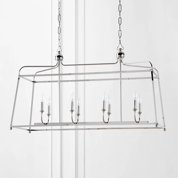A beautiful balance of classic and modern, this chandelier’s delicate lines, open framework, and polished nickel finish make it a versatile addition to any space.