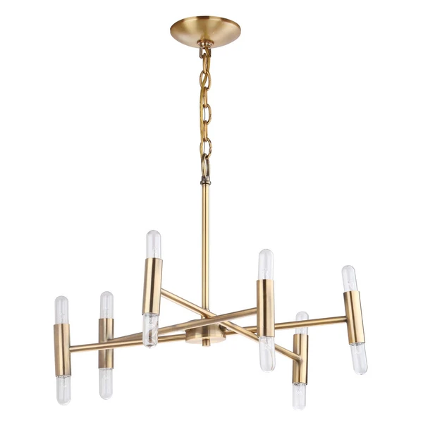 Designed with intersecting linear arms in a gleaming gold finish, this chandelier illuminates any space in eye-catching style.