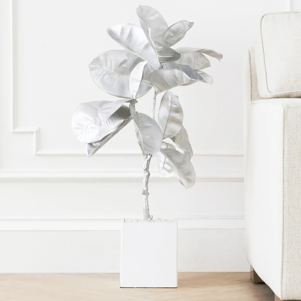 Graceful leaves, loves the indoors, super low-maintenance. This impressive (more than 3 feet tall) faux banana leaf plant comes pre-potted. You get gorgeous greenery with a modern pop of silver, all in one. No water or sunlight required.