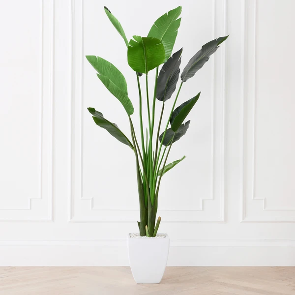 Bring a touch of the tropics into your home with our faux Palm Tree.Nestled inside a contemporary pot, graceful stalks unfurl into a brilliantdisplay of lush, fanlike leaves. Authentic to the eye, our palm willinstantly transform your space into a botanical paradise.