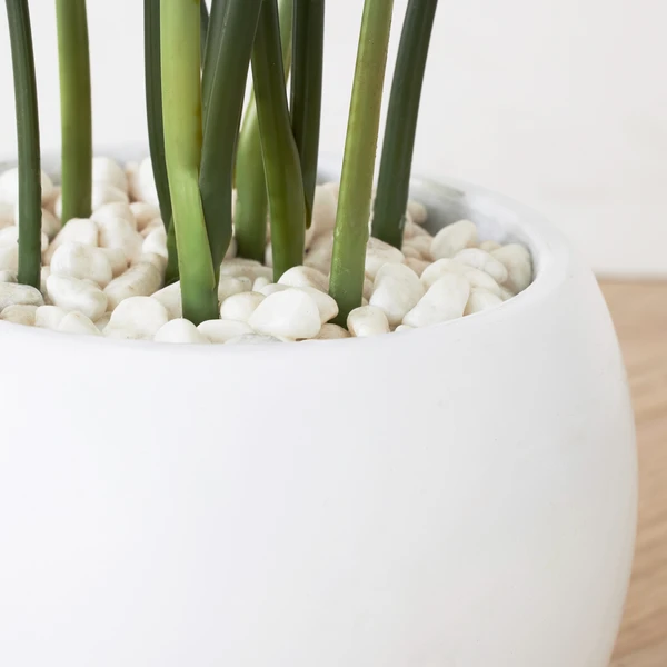 Graceful stems, loves the indoors, super low-maintenance. This impressive (more than 3 feet tall) faux water canna plant comes pre-potted, so it’s prepped to grace mantles and more. You get gorgeous greenery with a chic pop of white, all in one. No water or sunlight required.