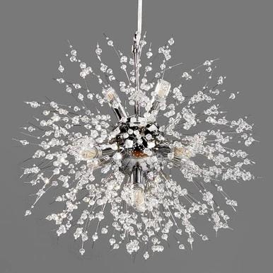 Sophistication meets whimsy in this ethereal secret-garden-inspired chandelier, aptly named Fleur. A sphere of light-reflecting crystal beads appear to float in thin air thanks to artful steel suspension cables.