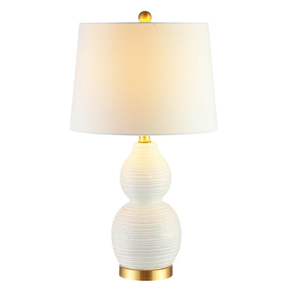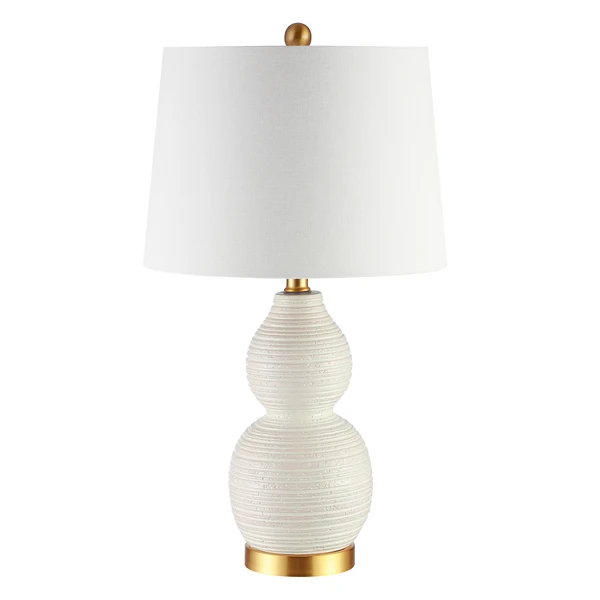 A masterful display of sculptural artistry, this Frances Lamp is a striking addition in any room. The rippling texture on the double-gourd silhouette gives unique visual intrigue and a sleek gold base highlights its clean white finish, making it seamlessly illuminate any style of décor.