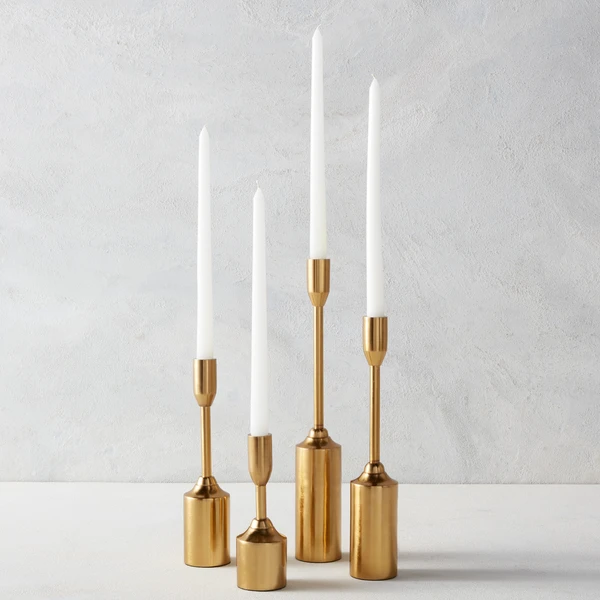 Designed with clean, simple lines and a gleaming gold finish, our Galo taper holders add modern elegance and height to any tabletop or mantel. Taper candles not included.