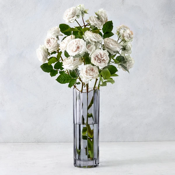 Create a beautiful floral arrangement within the stunning grey Gunnar vase. This is a standout piece with beveled shape and gold trim. Available in two sizes to add further interest throughout your space.