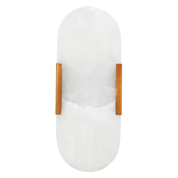 Featuring an oblong pane of alabaster that appears to float in front of the wall, this sconce brings natural beauty to any space. Minimalist steel brackets allow it to be hung vertically or horizontally. Because this item is handmade from natural materials, variations in color, pattern, and texture may occur.
