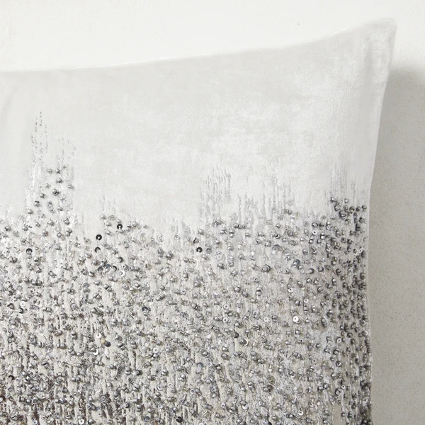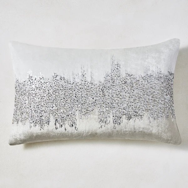 Crafted of silky-soft velvet and hand-dyed by artisans to create a striking ombrĂŠ effect, our Joie de Vivre lumbar pillow is finished with a metallic foil print and hand-beaded design that shimmers on any sofa or chair. Due to its handmade nature, each pillow has its own character with slight variations in color and design.