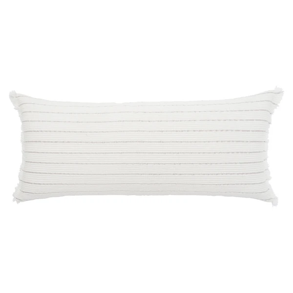 A stylish accent for any sofa, bed, or chair, this striped cotton pillow is intricately handwoven with gold metallic thread for a hint of shimmer and finished with soft fringe on two sides. A plush feather-and-down insert ensures long-lasting comfort.