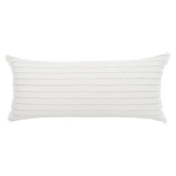 A stylish accent for any sofa, bed, or chair, this striped cotton pillow is intricately handwoven with gold metallic thread for a hint of shimmer and finished with soft fringe on two sides. A plush feather-and-down insert ensures long-lasting comfort.
