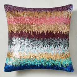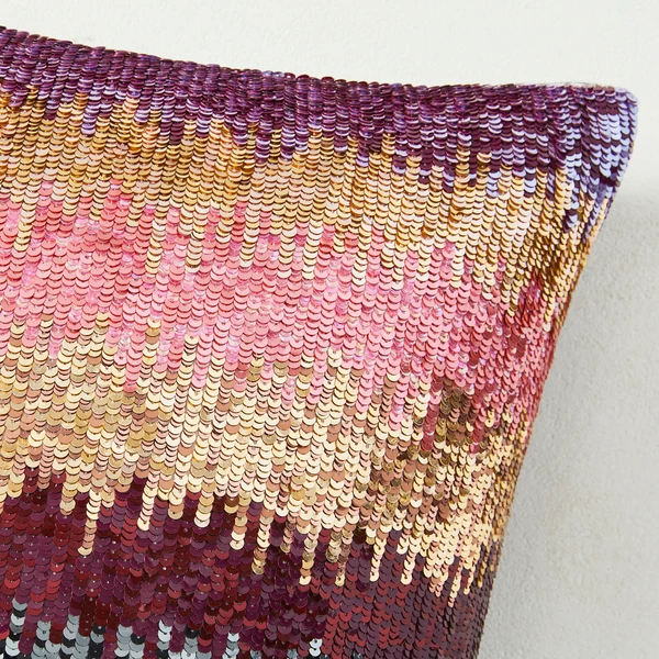 A glam accent with incredible texture, this pillow is made of cotton and adorned with colorful sequins. Solid back. Insert included.
