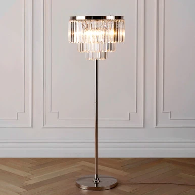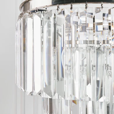 Sophisticated and refined, our Luxe Lighting Collection layers your dĂŠcor with a stunning glow of light. Crafted out of ocular glass for maximum opulence, each of the independently hung faceted prisms on the Table Lamp stunningly reflect and embellish the surrounding light. Four lights in total make for a grand statement when lit, casting magnificence into its surroundings. Coordinate with our Luxe Chandelier or Luxe Table Lamp for even more impact.