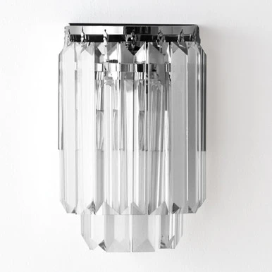 Finished in polished nickel, this sconce is embellished with faceted crystals for a glamorous touch.