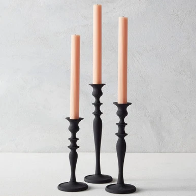 Designed with a shapely silhouette and textured, matte black finish, our Mateo taper holders add drama and height to any tabletop or mantel. Taper candles not included.