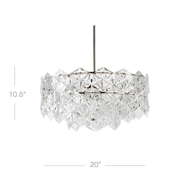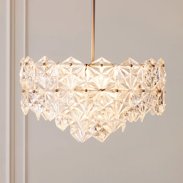 Set the scene for a romantic evening with the Olivia Chandelier. Her molded glass is almost floral in appearance and the facets shed just the right amount of light to create the special ambience you’re looking for.