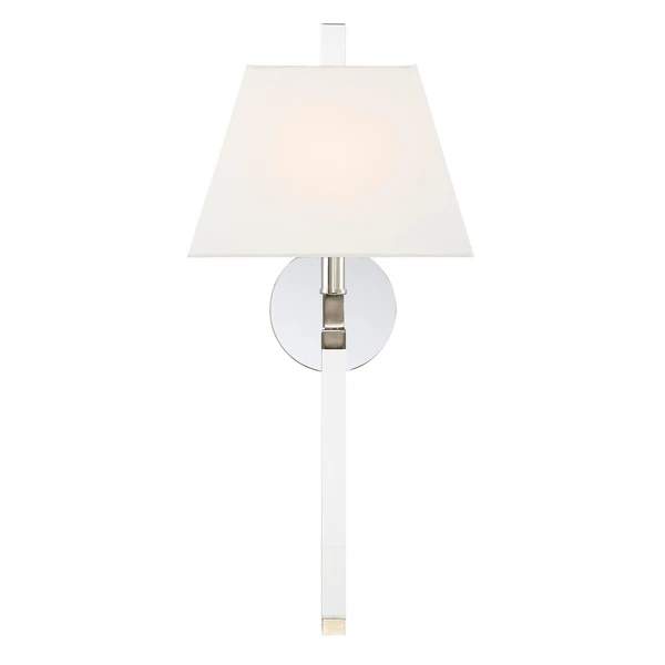 Undeniably chic, our Reid Wall Sconce presents a new angle on modern lighting design. Offered in a brushed gold or polished nickel finish, we’ve incorporated a thick acrylic stem that brightens your space with its glowing transparency. Reid’s tapered rectangular shade is set against a circular backplate, introducing an interplay of shapes to our luminous design.