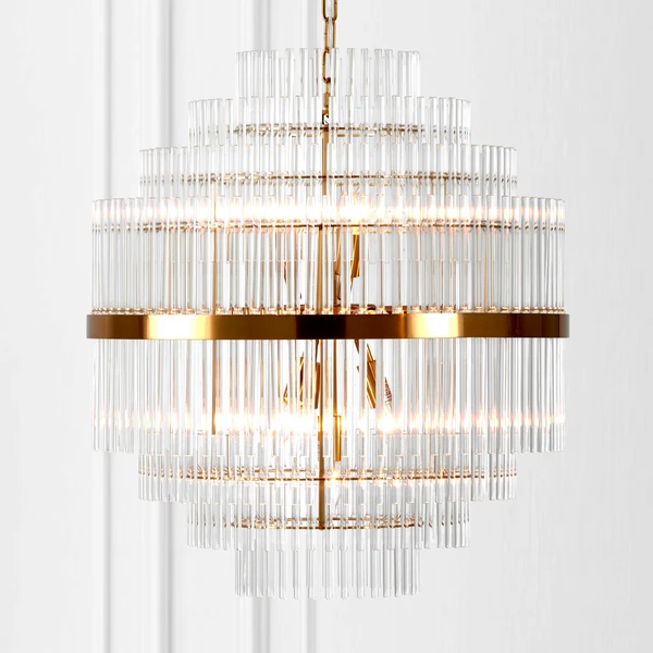 Seeking dramatic sophistication in your lighting solution? Look no further! Featuring dozens of glass rods set in an elegant polished gold frame, our Renata chandelier makes a grand statement in any space.