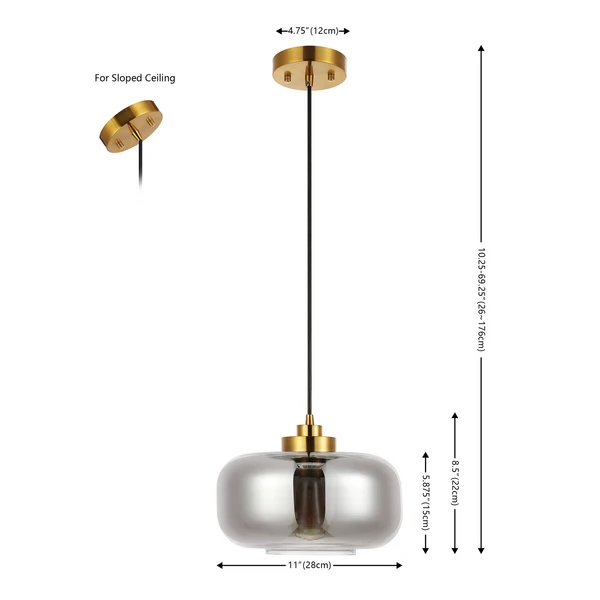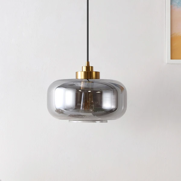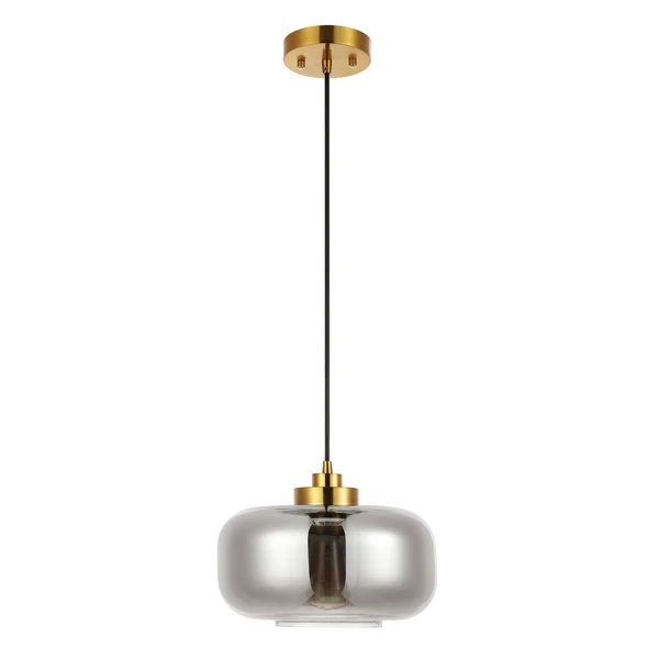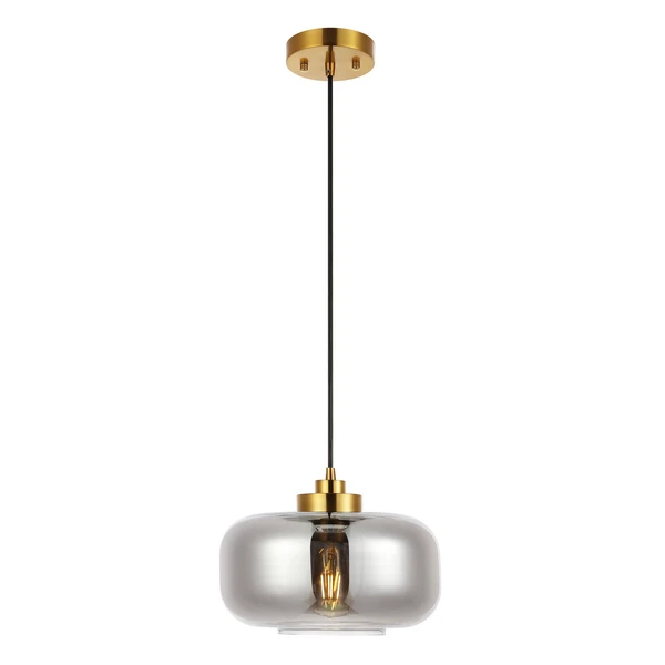 Illuminate your home with the refined elegance and sophistication of our Sirus pendant light. The glass shade combines clean lines and rounded edges to attain a stunningly minimalistic pendant. A smoke grey finish reveals the distinctive bulb to lend subtle vintage notes to our pendant. Completed with gleaming brass hardware, the pendant can be hung alone or arranged in multiples to lend a soft glow to your dining table, kitchen island, bedside table, or armchair.