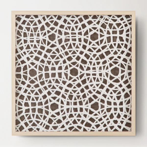 Our Stowe Wall Decor is a shadow box accentuated with a rice paper-like brown mat and a circular radiating pattern of woven white rattan with a natural blonde molding. This piece of art is hand painted by a skilled artist lending itself to a unique technique and will vary slightly.
