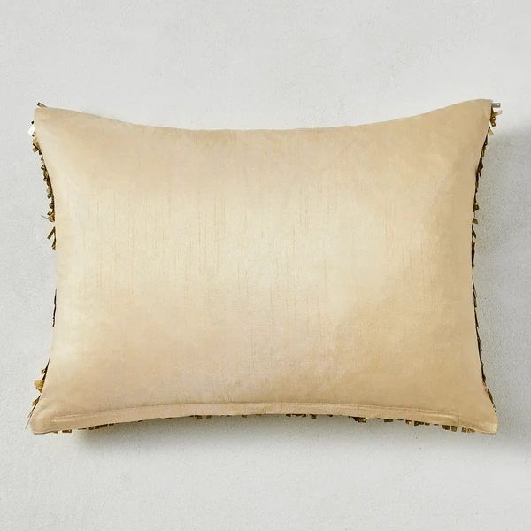 Embellished with shimmering gold sequins, this pillow brings texture and glamour to any room. Solid back. Insert included