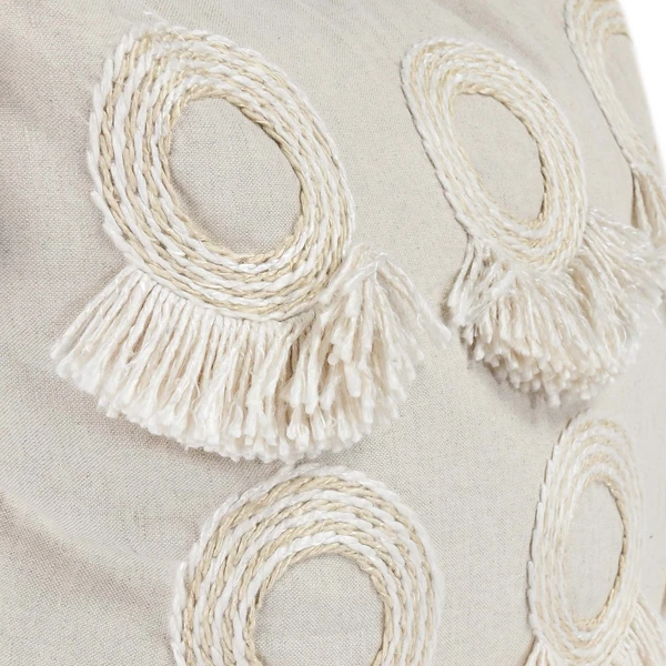 Beautifully embellished with embroidery, fringe, and tassels, our handcrafted Tilda pillow features a neutral, tonal palette and an eye-catching boho design.