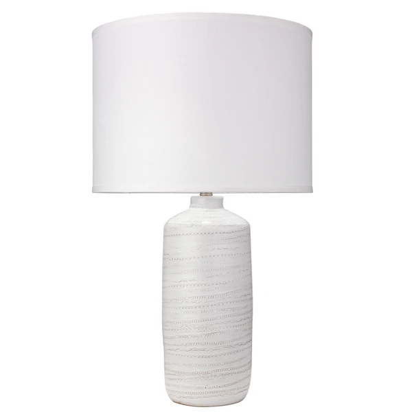 Simple yet sophisticated, creamy white, textured and hand-glazed ceramic lamp adds the perfect amount of subtle interest to any room.