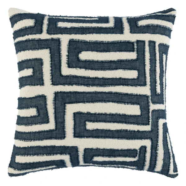 A hand-applied applique gives our Zane pillow a bold, geometric look while adding texture and rich color to your space. The deep blue tone pops against the ivory background to create a versatile look. Filled with a down blend, Zane offers plush comfort without sacrificing eye-catching style.
